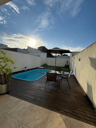 Nosso quintal é totalmente privativo, ninguém além de você e seus convidados tem acesso ou vista. Totalmente seguro e com inúmeras possibilidades para você deixar do seu jeito.